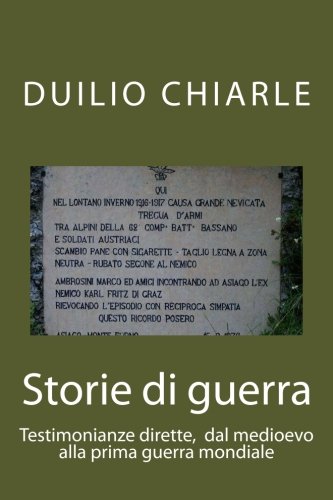 Oggi si parla molto della guerra, soprattutto a sproposito. In questo libro, numerose testimonianze di persone che hanno combattuto dal medioevo alla prima guerra mondiale. Testimonianze interessanti, anche episodi bizzarri e curiosi, nessuna retorica. Questa antologia raccoglie epistole, diari, racconti, poesie: tutte "testimonianze" dirette di guerra. Una raccolta davvero unica e dalla piacevole lettura.